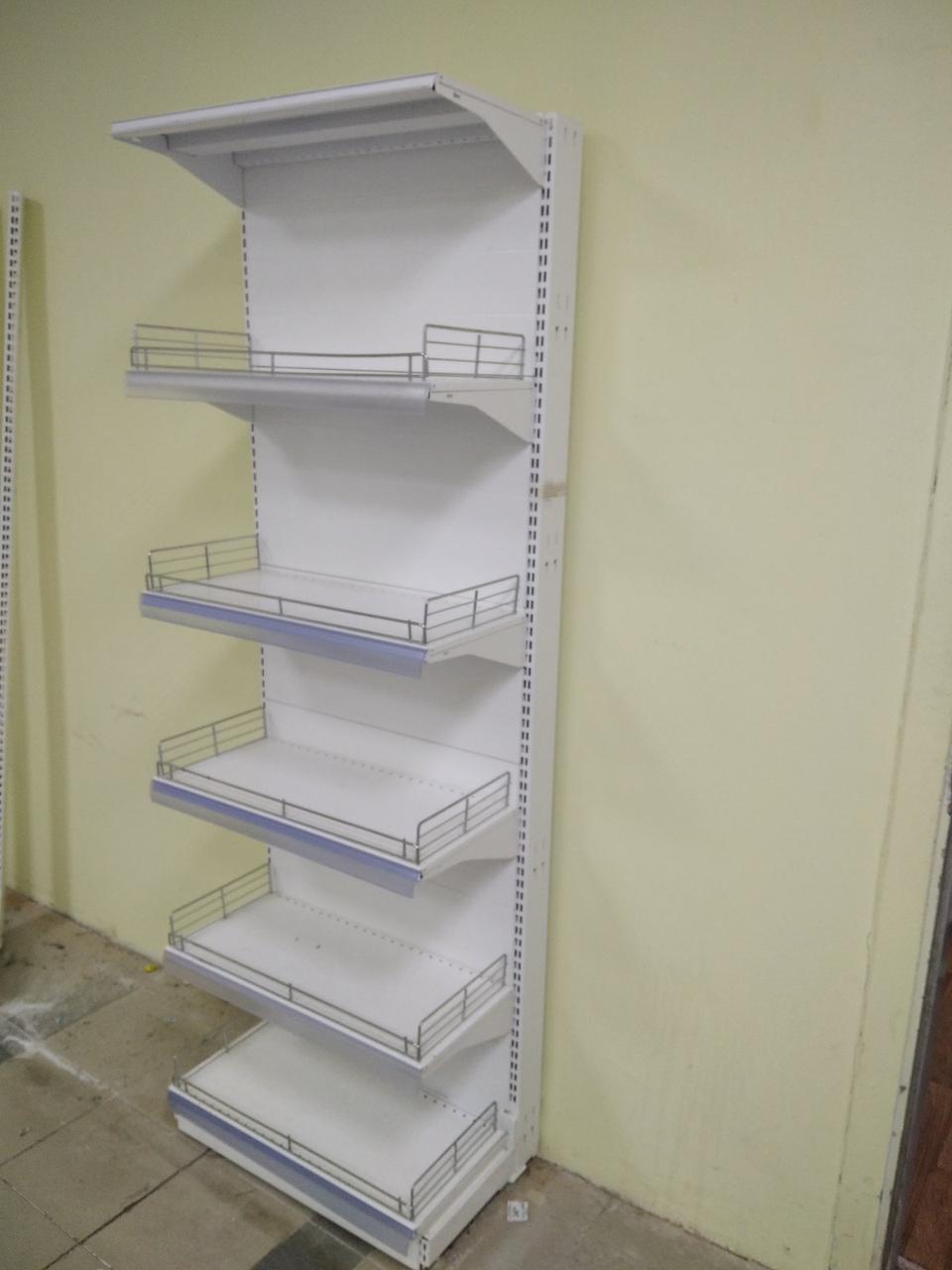 Фото стеллажа в полной комплектации с ограждениями и ценникодержателями носит ознакомительный характер! Стеллаж продается без учета ограждений и пластикового профиля.
